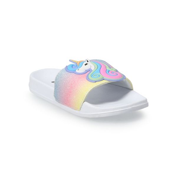 Girls Unicorn Sliders Rainbow Glitter Flip Flops Beach Pool