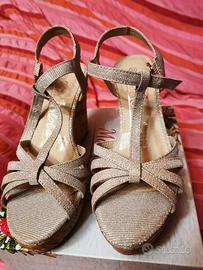 Sandali donna con zeppa dorati Miss Globo Abbigliamento e