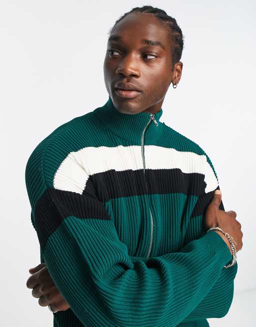 ASOS DESIGN ribbed track jacket with stripe in forest green
