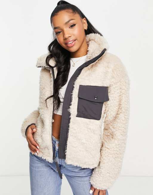 Abercrombie Fitch teddy fleece pocket detail jacket in tan