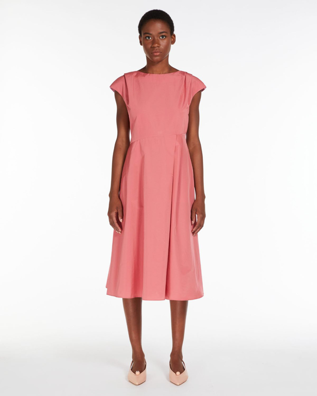 Abito midi color corallo in taffet con maniche ad aletta taglio