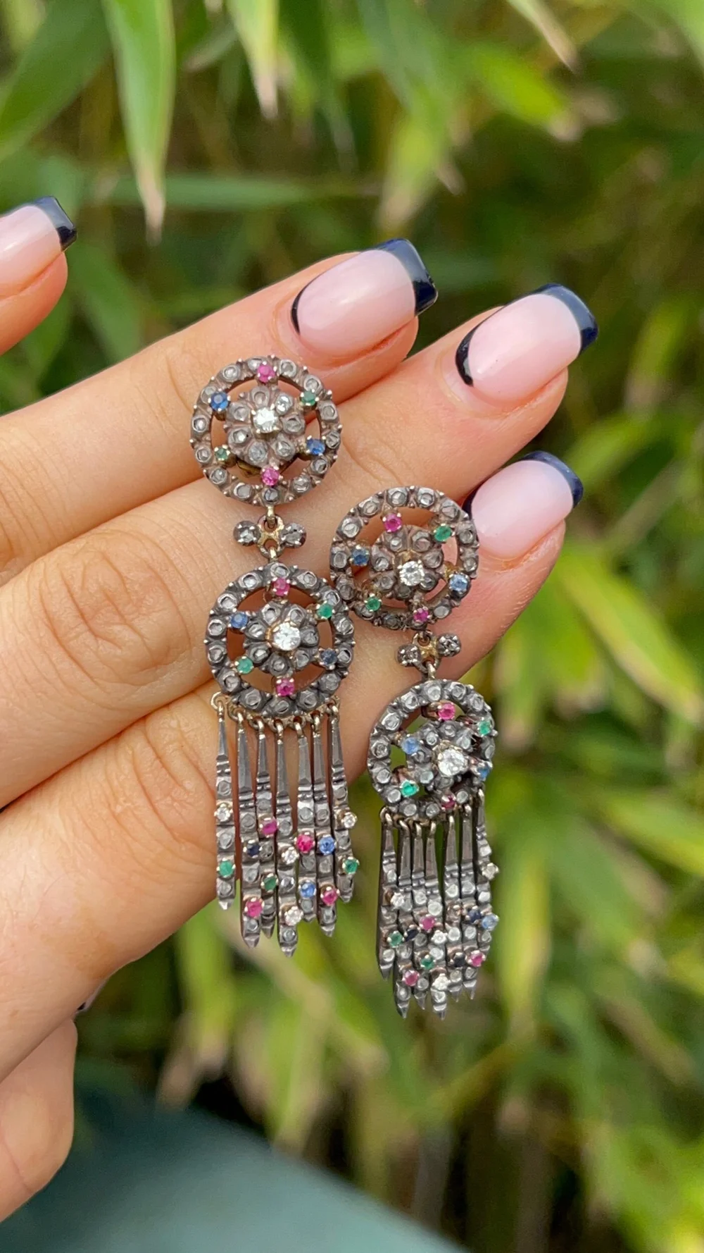 Amazing Multi Stone Silver and 9 Carat Gold Earrings Gembank1973