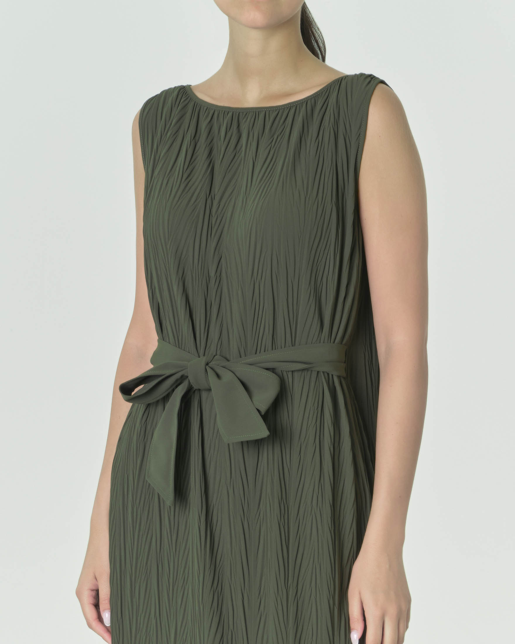 Abito on sale verde militare, Abito lungo smanicato verde militare in tessuto froiss con on sale