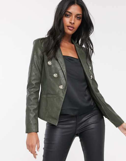 River Island Military Blazer aus Kunstleder in Khaki