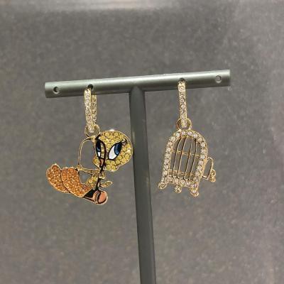 Swarovski Tweety small yellow duck asymmetric earrings Disney Cui Di bird bird cage cartoon earrings earrings anti allergen crystal