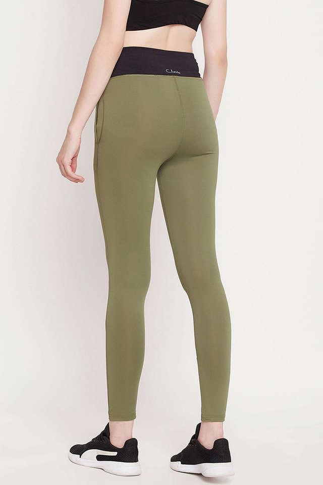 Buy CLOVIA High Rise Active Tights in Olive Green with Side