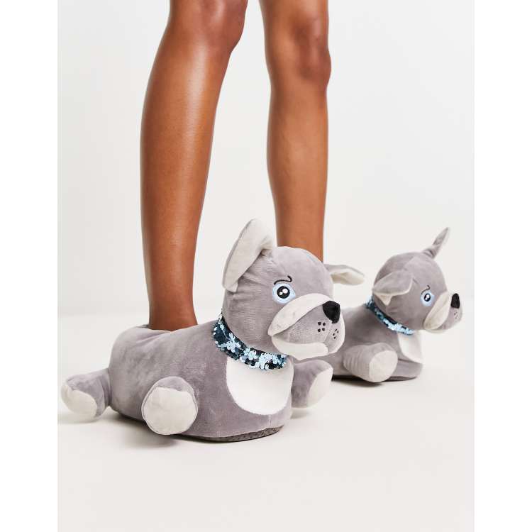 ASOS DESIGN Zanny french bulldog slippers in grey ASOS