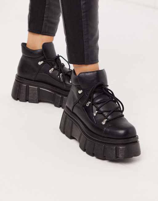 Truffle Collection wide fit lace up chunky boots in black ASOS