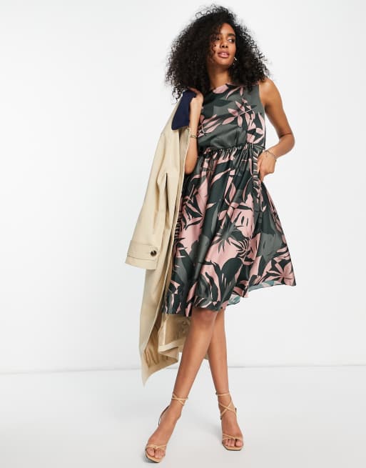 Ted Baker Dagny printed midi dress in khaki ASOS