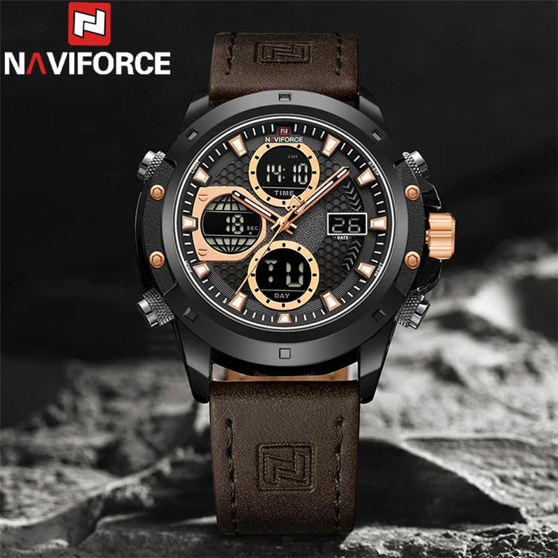 NAVIFORCE Men Digital Sport Watch Man Leather Quartz Business Watches