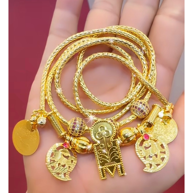 Solid 22k Gold 916 Gold Loop Cz Stones Pendant With Foxtail Etsy