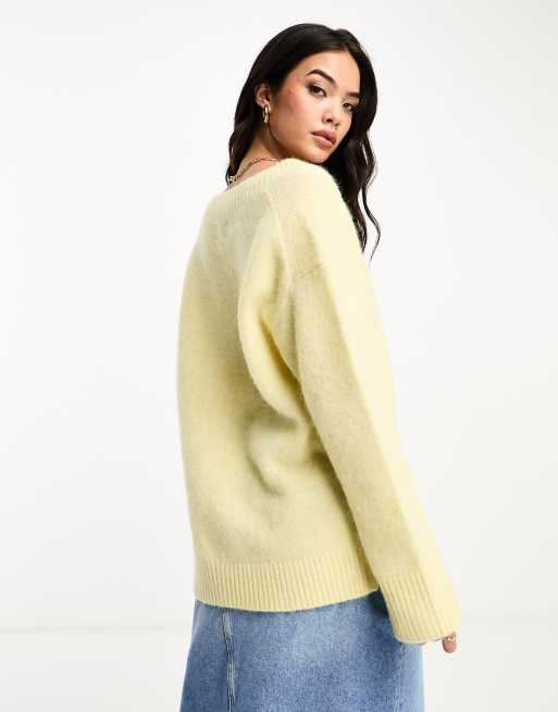 ASOS DESIGN chunky v neck sweater in alpaca wool blend in butter yellow